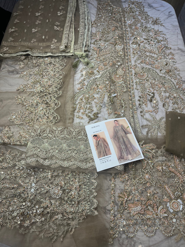 Craftsmanship: Embellished with a luxurious mix of sheesha, dabka, katdana, and gangajamni motifs—each detail a testament to artisanal heritage.