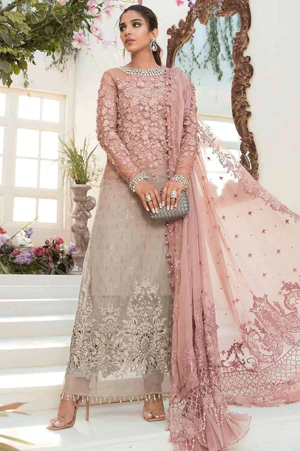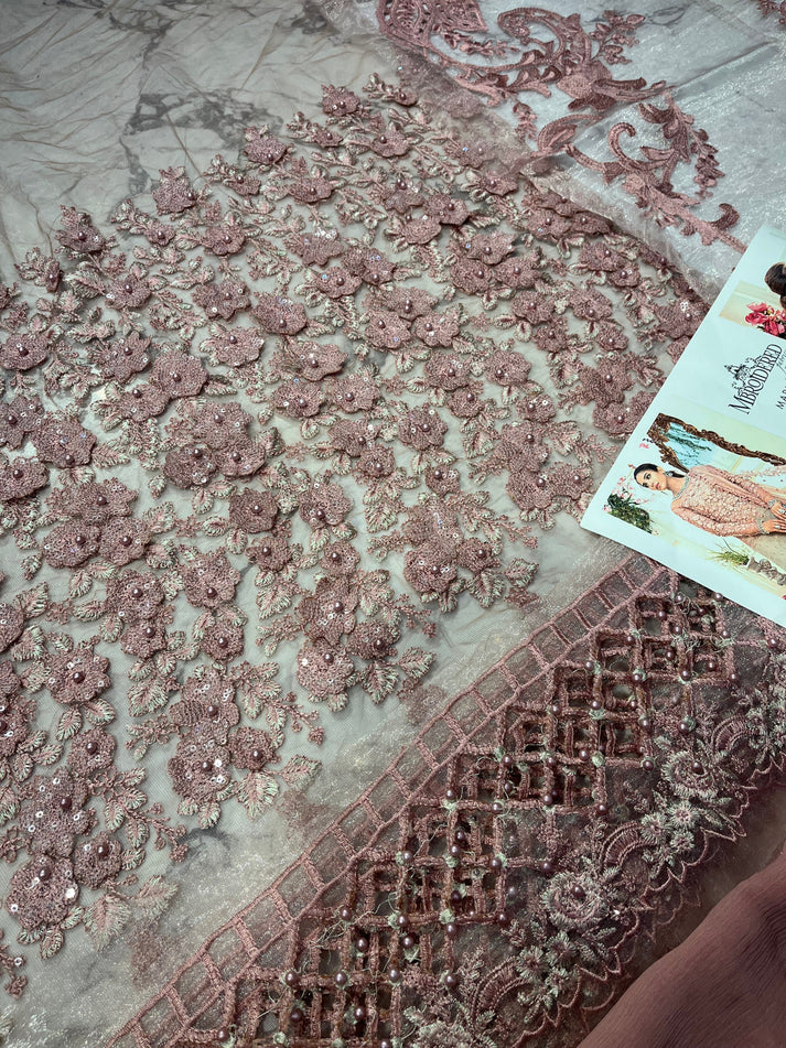 - Embroidered Net Sleeves With Pearls & 3D Flowers Hand Work