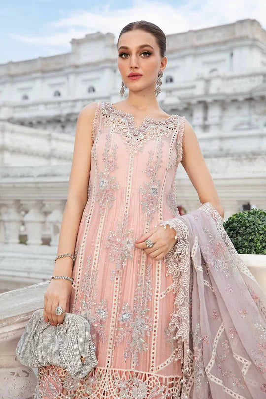 EMBROIDERED & EMBELLISHED+3D FLOWERS FRONT NECK LINE ORGANZA.